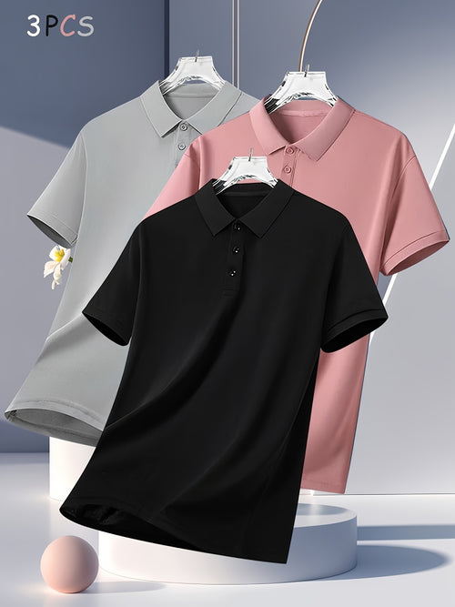 3pcs Men's Casual Shirts - Breathable Polyester, Button-Up, Short Sleeve in Black, White, & Navy - Ideal for Summer Sports & Leisure